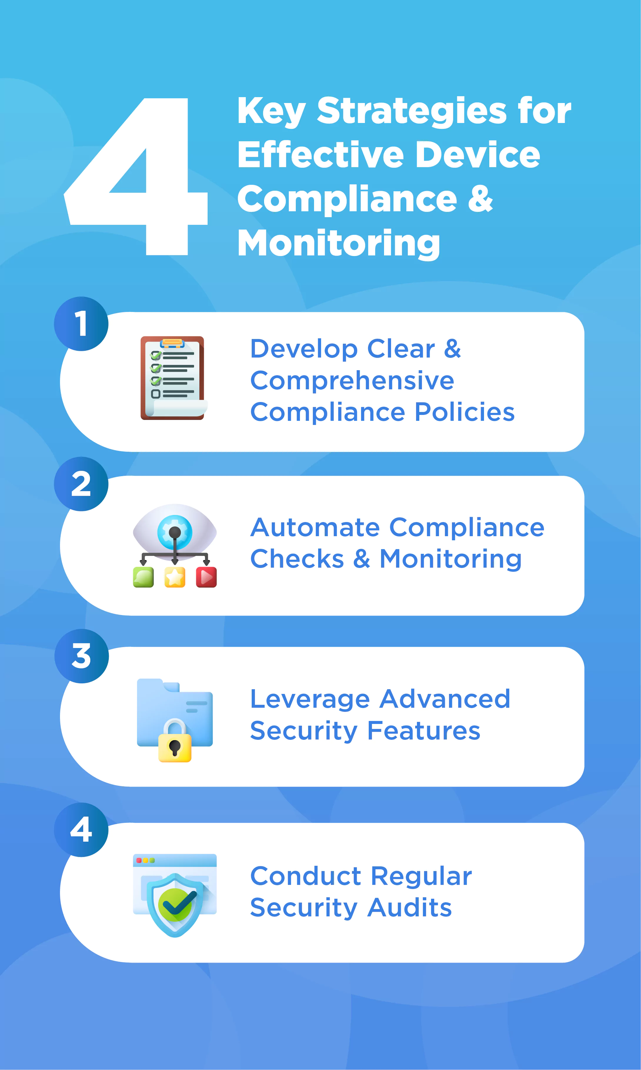Device compliance and remote device monitoring are integral components of a successful Mobile Device Management strategy. By enforcing security policies and continuously monitoring devices for potential threats, organizations can reduce risks, meet regulatory requirements and enhance operational efficiency.